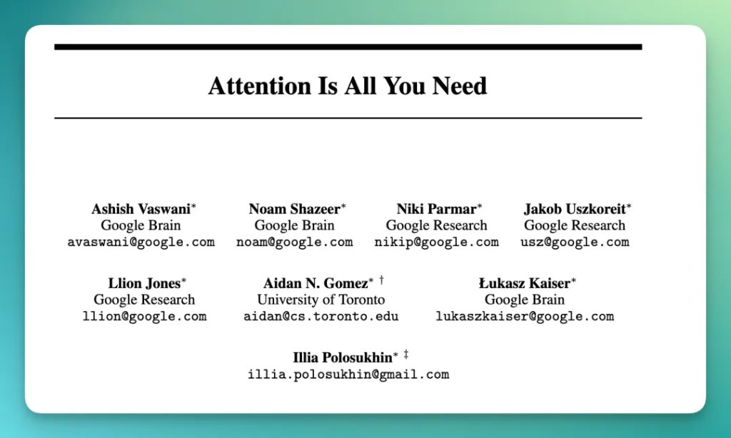 被称为「ChatGPT奠基之作」的 Transformer 模型架构,在推出后不久,其八位著名作者(人称 Transformer 八子)在 2023 年均已离开谷歌,创办了自己的公司。