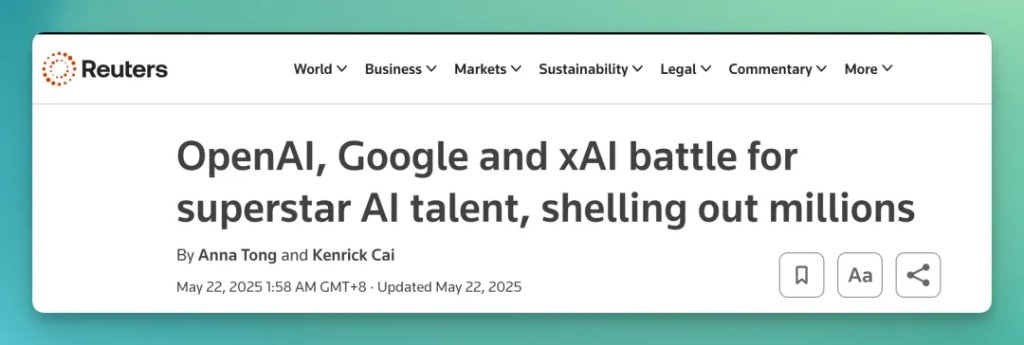 比如,有报道提到 Google DeepMind 为核心研究者提供每年高达 $20 million 的薪酬方案,还缩短股权归属周期至 3 年。